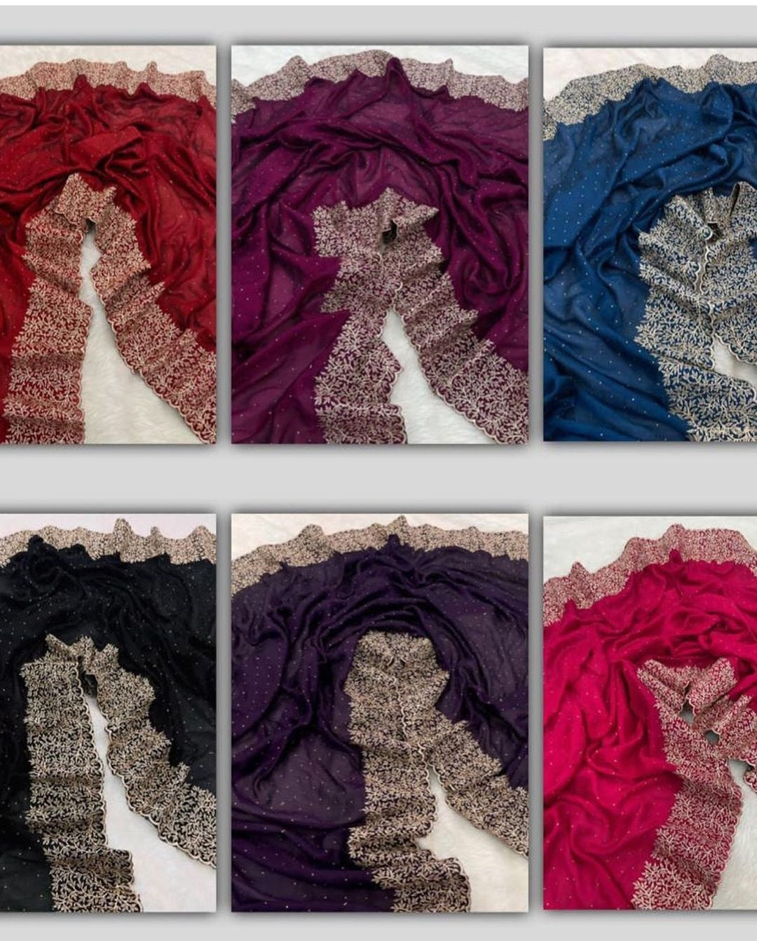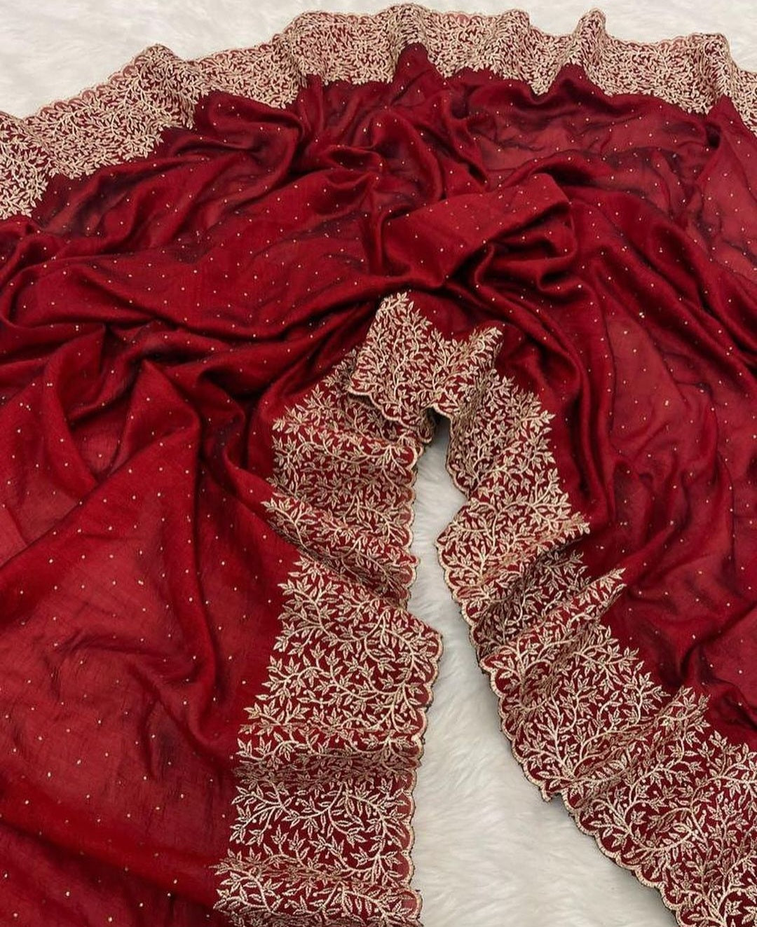 Sari Fabric: Premium Two Tone Vichitra Silk with Heavy Embroidery Work & Stone Work